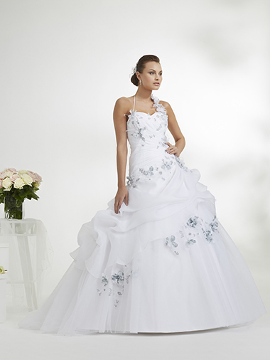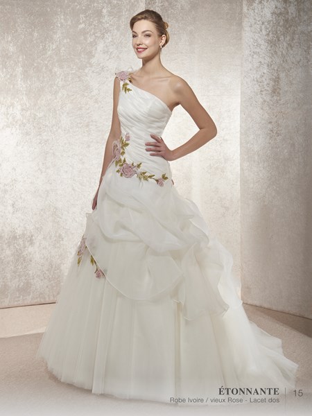 Robe de mariage MORGANE - Robe organza, motifs en dentelle, existe en différente couleurs